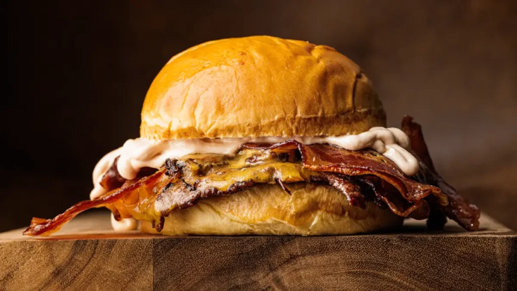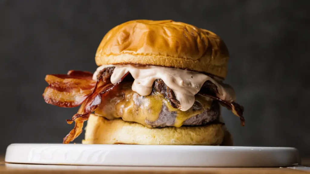Doble carne smash, doble de cheese y bacon con salsa secreta (solo se sirve muy hecha)