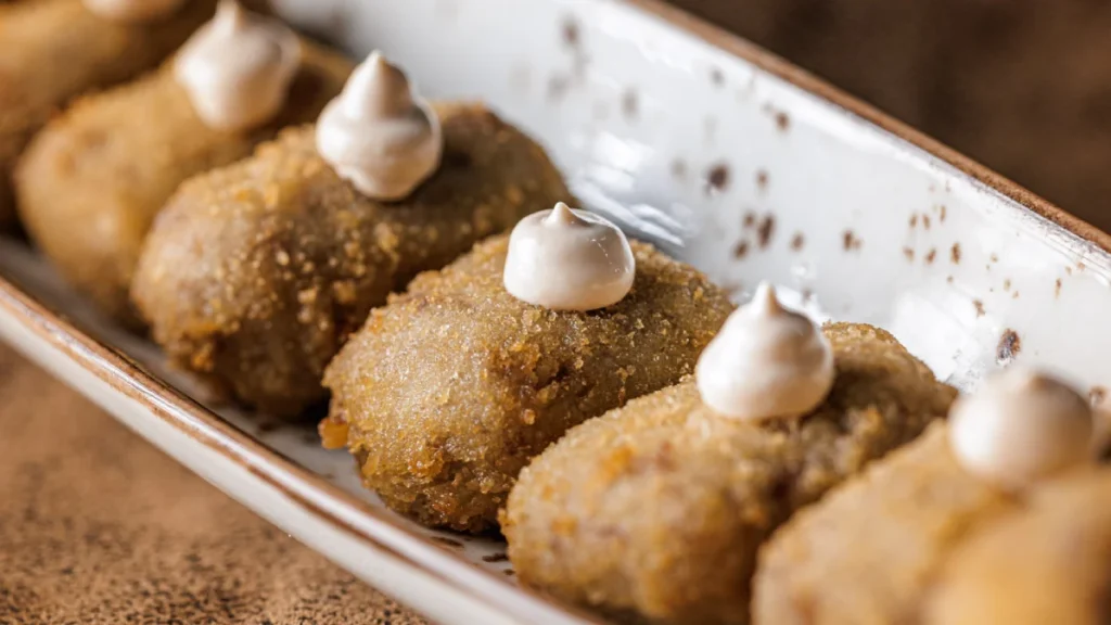 Croquetas cremosas de carne de buey con emulsión de su jugo