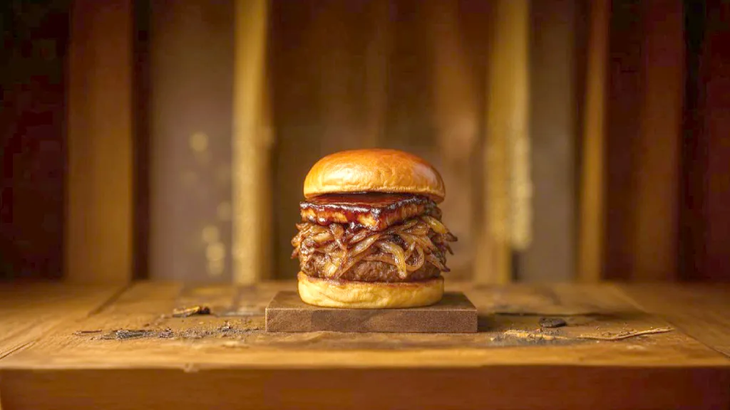 Carne de chuleta madurada 30 días, con Cheddar ahumado inglés, bacon, costilla desmenuzada hecha a baja temperatura y una salsa barbacoa-honey que define cada bocado.