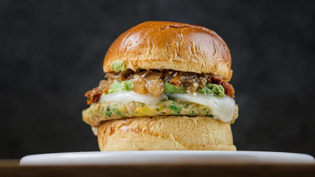 Burger vegetal con cebolla caramelizada, aguacate y queso de Agour, aderezada con una salsa Alioli que resalta todos sus sabores.